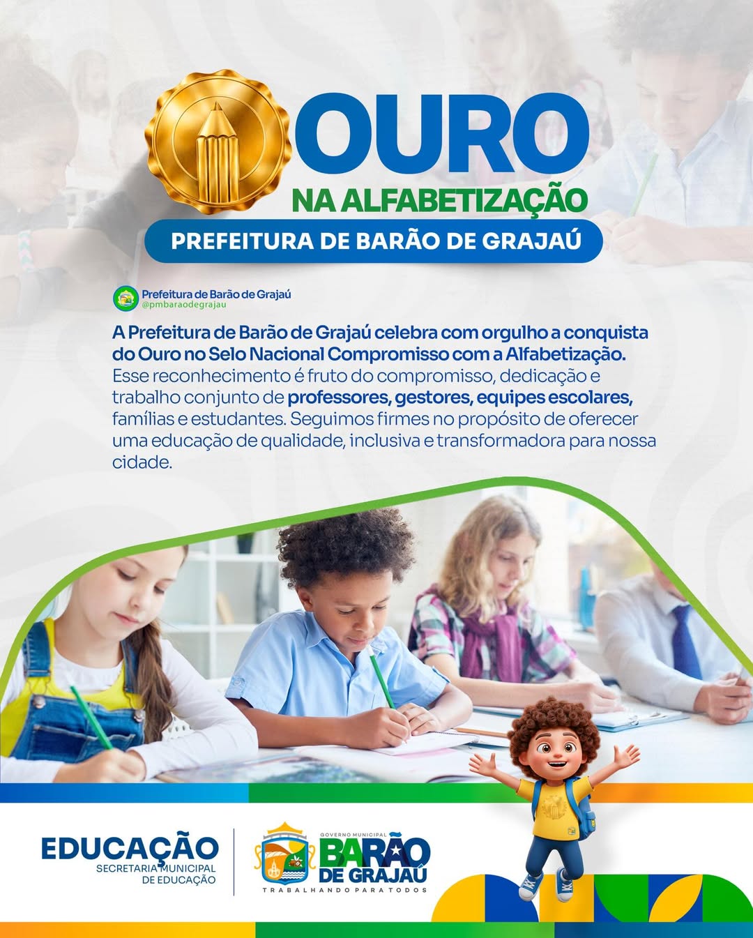 Barão de Grajaú conquistou um importante reconhecimento na área da educação ao receber o Selo Nacional Compromisso com a Alfabetização na categoria Ouro. A certificação evidencia o desempenho da rede municipal no fortalecimento das políticas voltadas à alfabetização, destacando o compromisso com um ensino eficiente e de qualidade para as crianças do município.